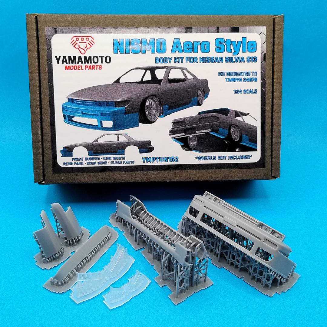 Custom 3D printed NISMO Aero Style body kit for 1/24 Nissan Silvia S13 from Tamiya. Body kit dedicated for Tamiya 24078.